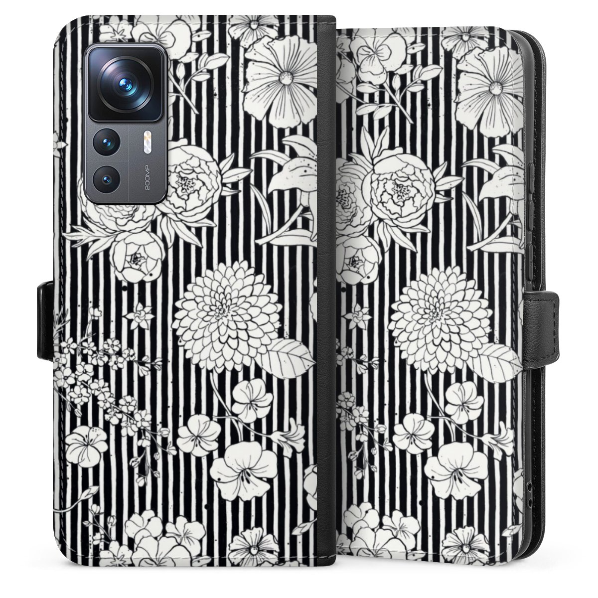 Flowers and Stripes Black and White