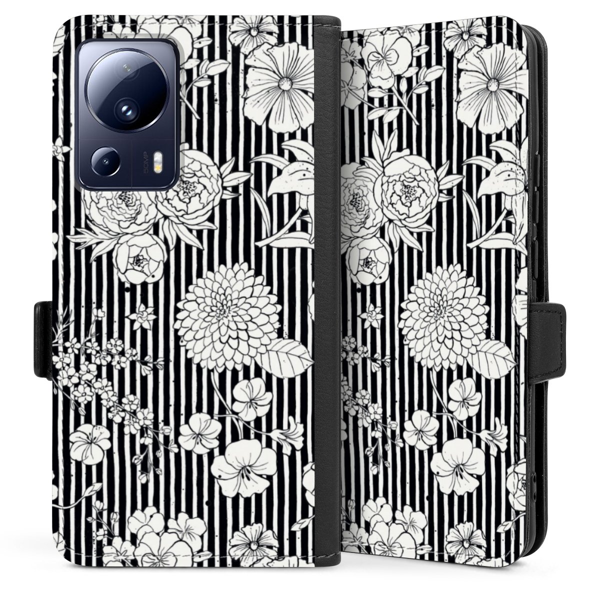 Flowers and Stripes Black and White