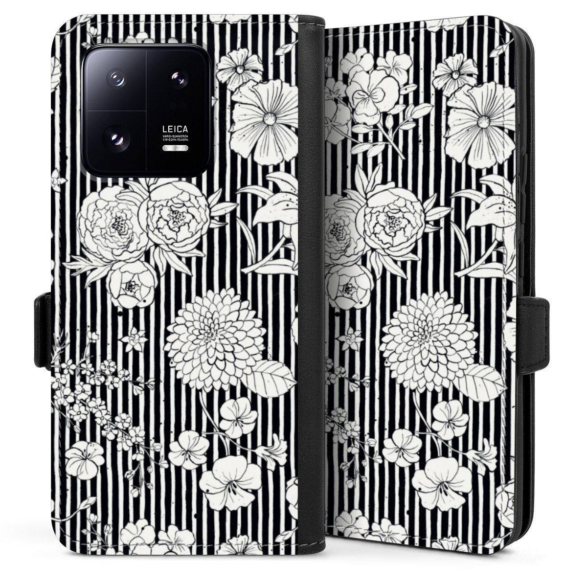 Flowers and Stripes Black and White