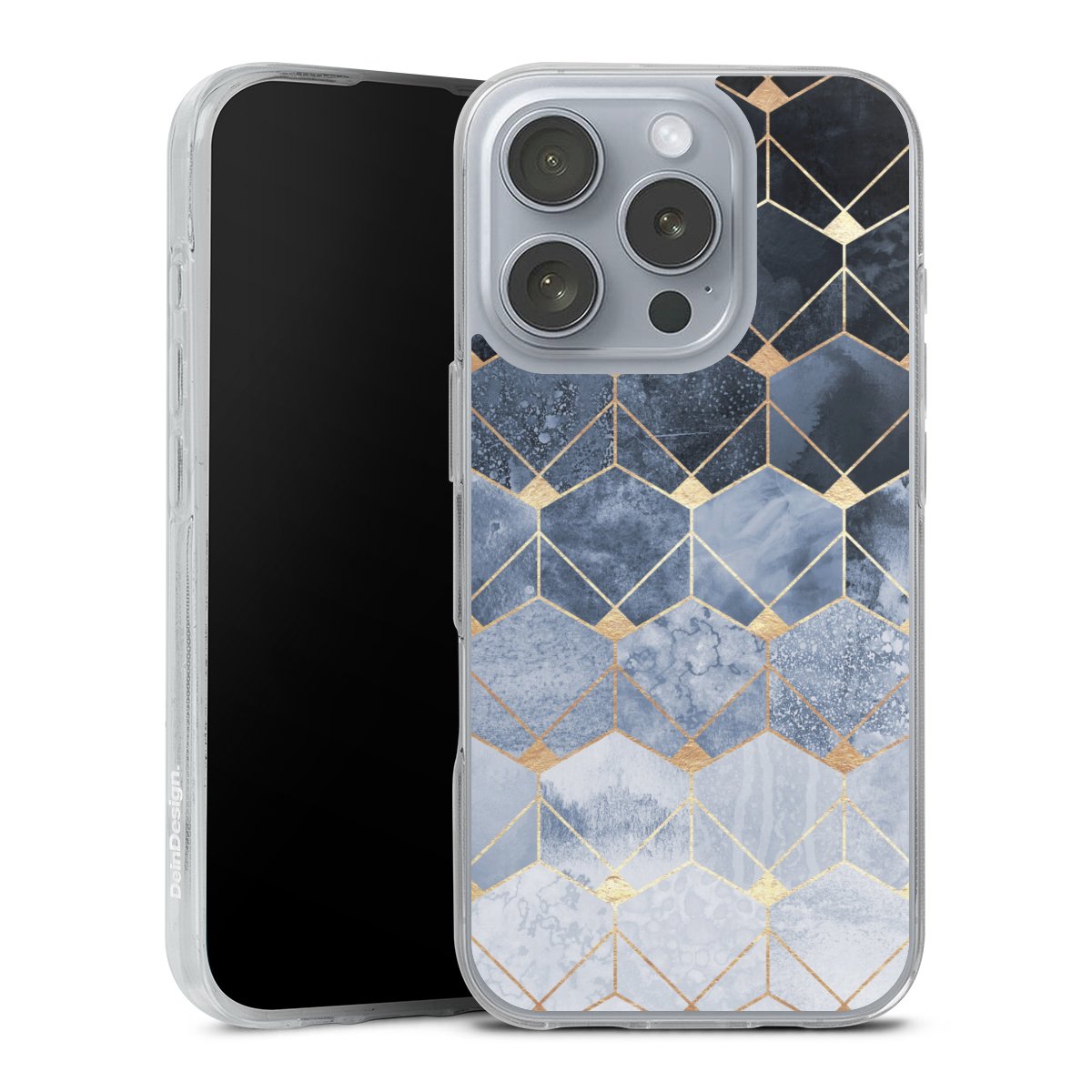 Blue Hexagons And Diamonds Gold Print