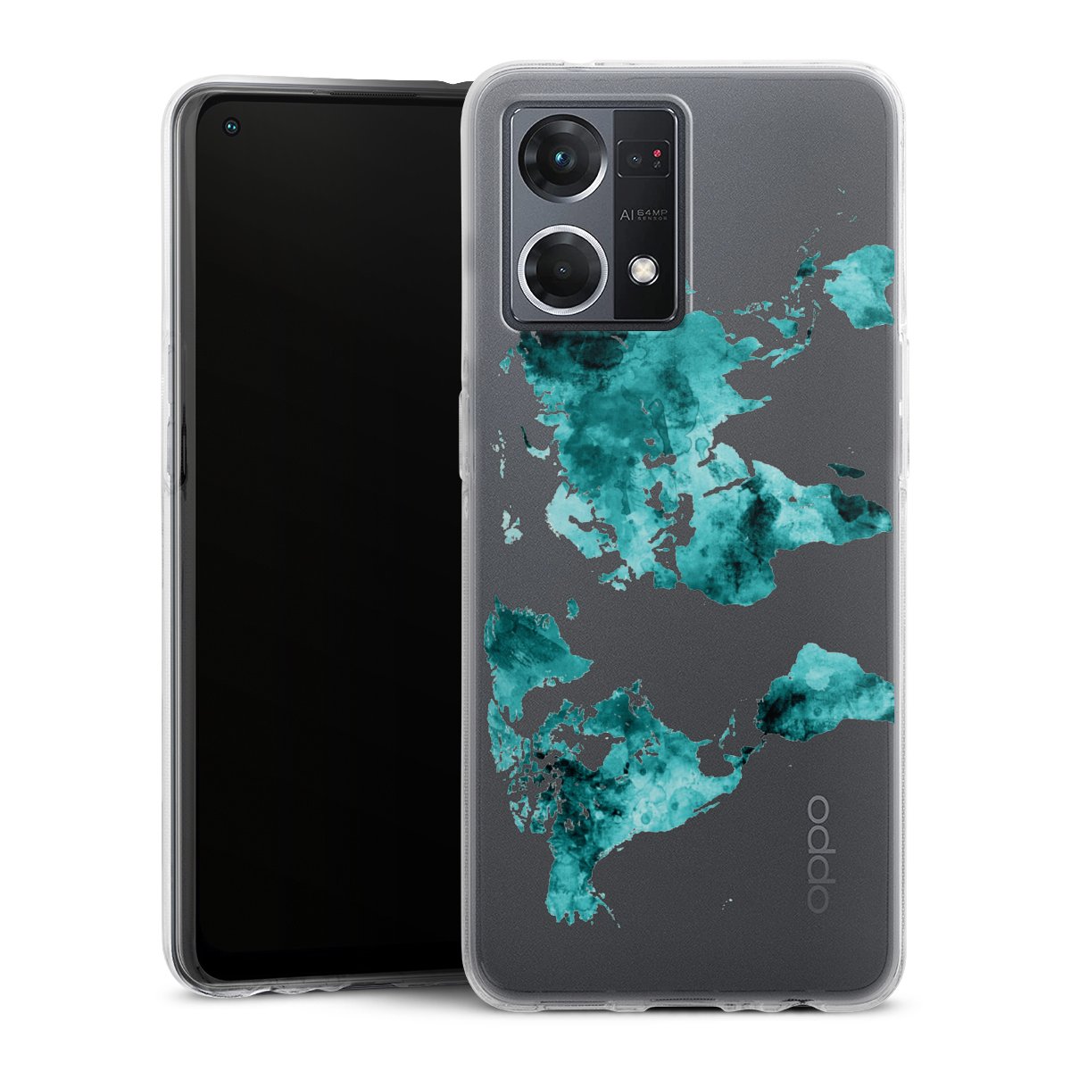 World Map Teal Transparent