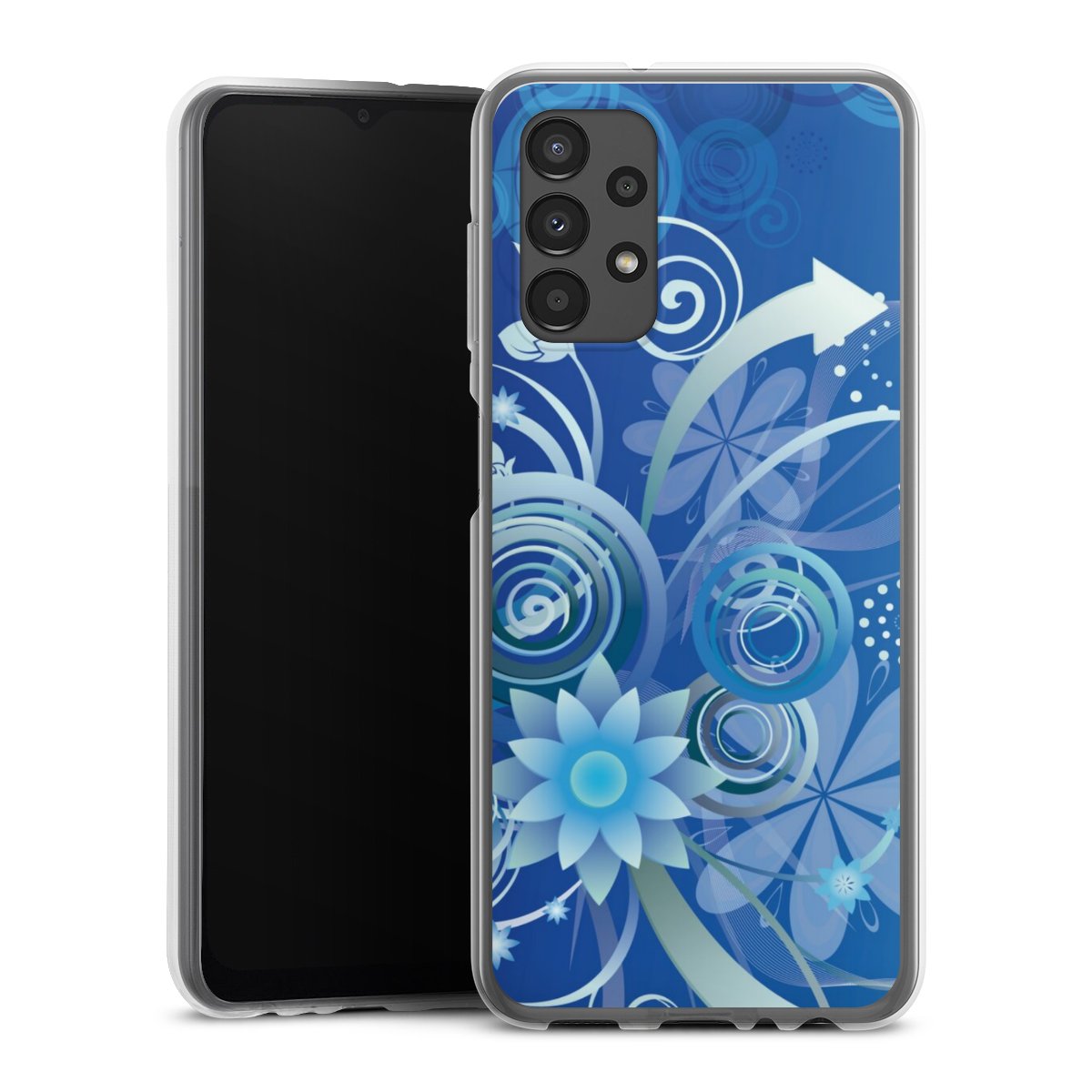 Flowers and Swirls Blue