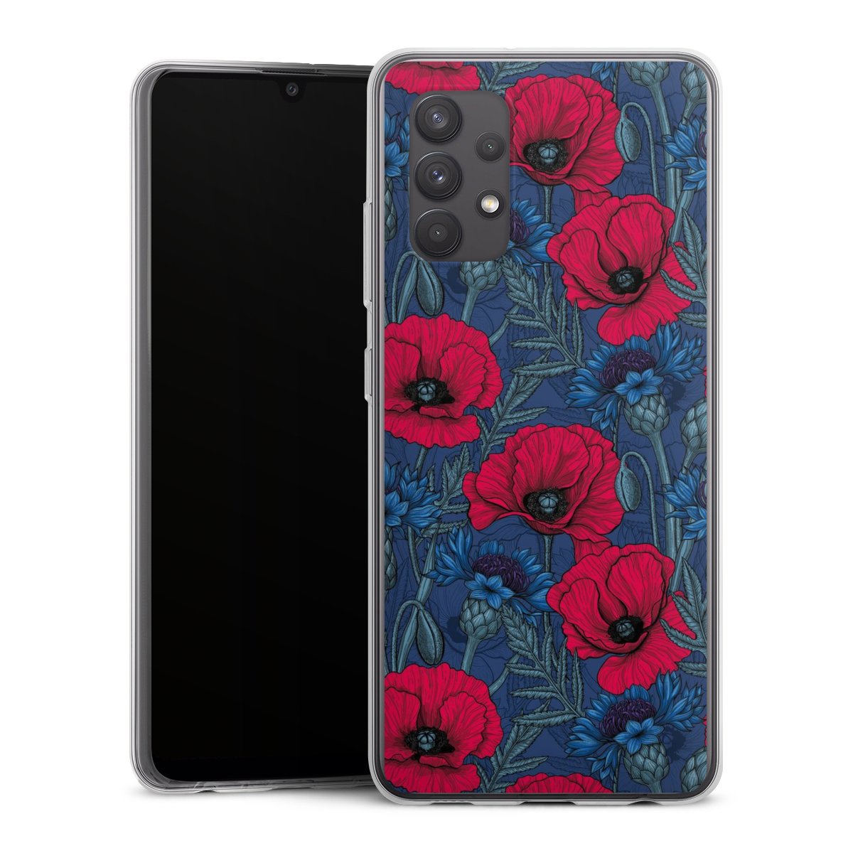 Poppies and Cornflowers on Blue