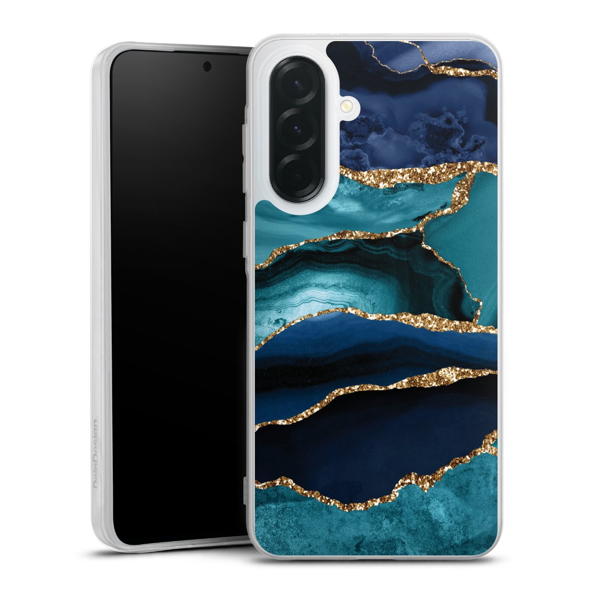 Dark and Light Blue Marble Gold Glitter Look