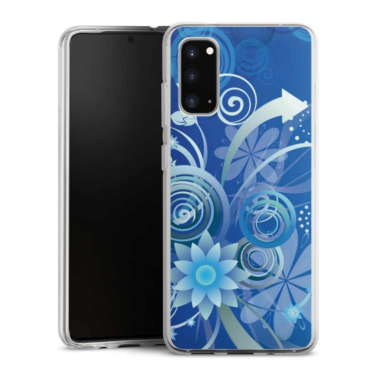 Flowers and Swirls Blue