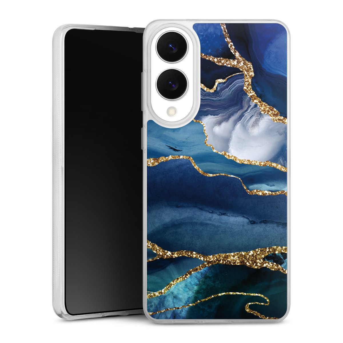 Blue Marble Gold Glitter Look