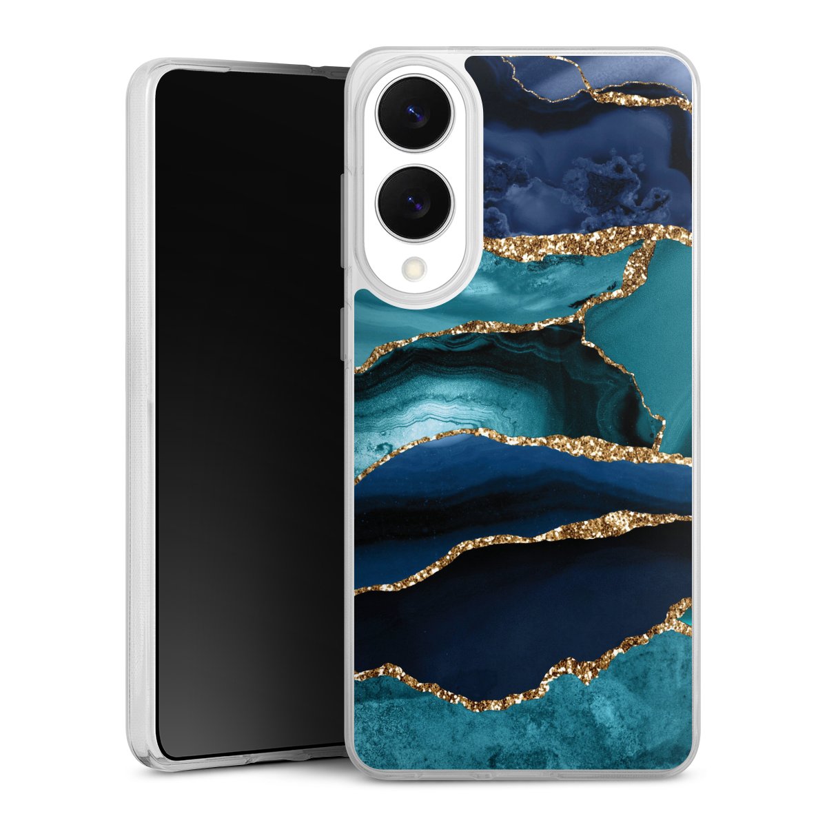 Dark and Light Blue Marble Gold Glitter Look