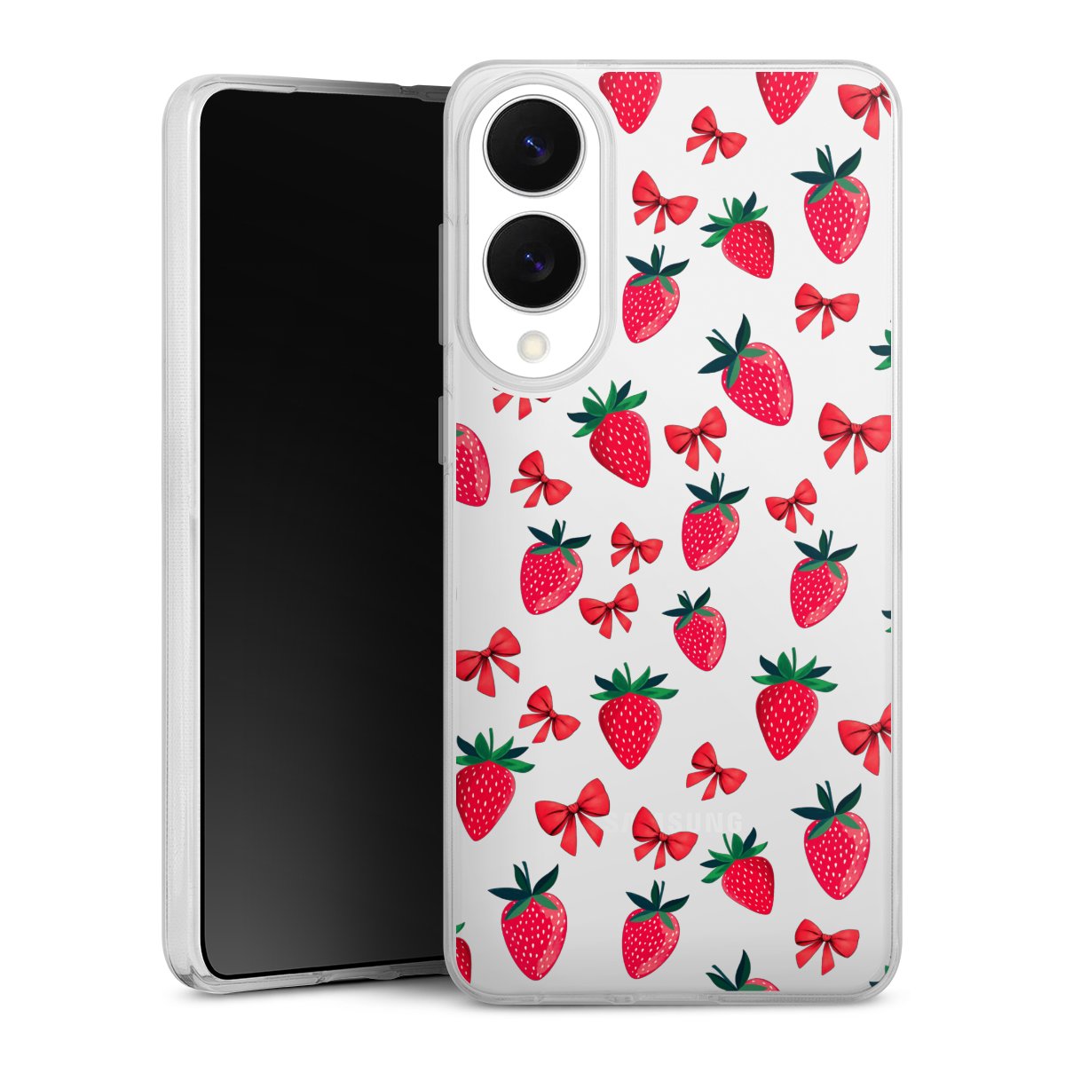 Strawberry Heart Ribbon Pattern Transparent