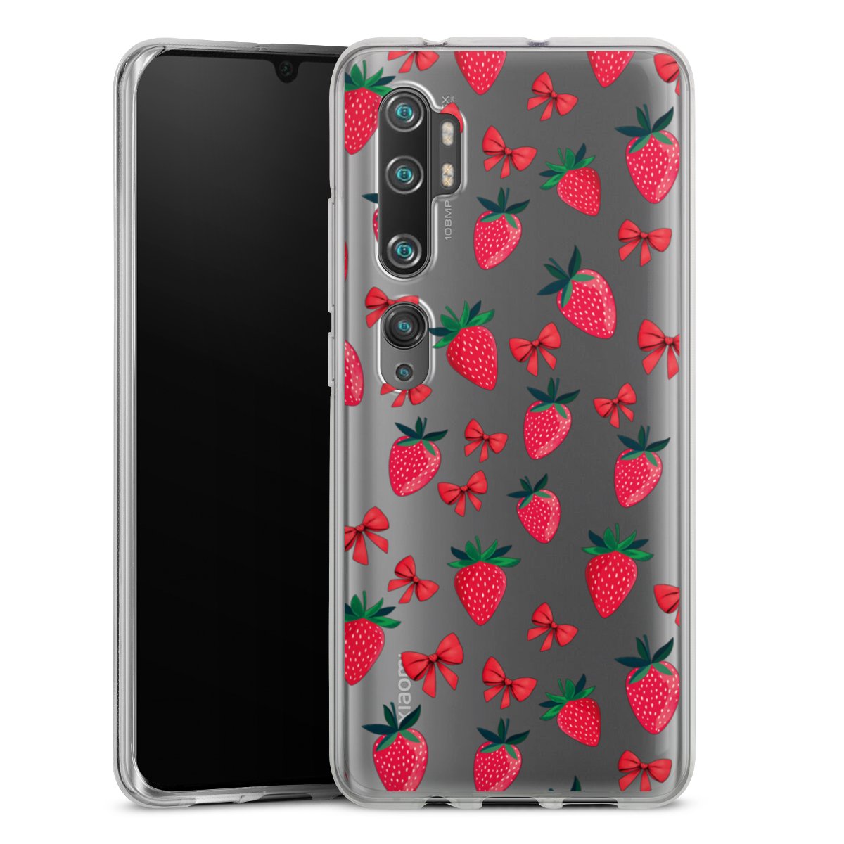 Strawberry Heart Ribbon Pattern Transparent