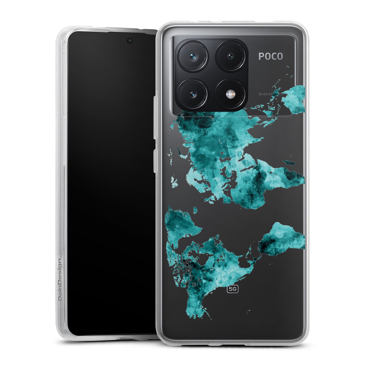 World Map Teal Transparent