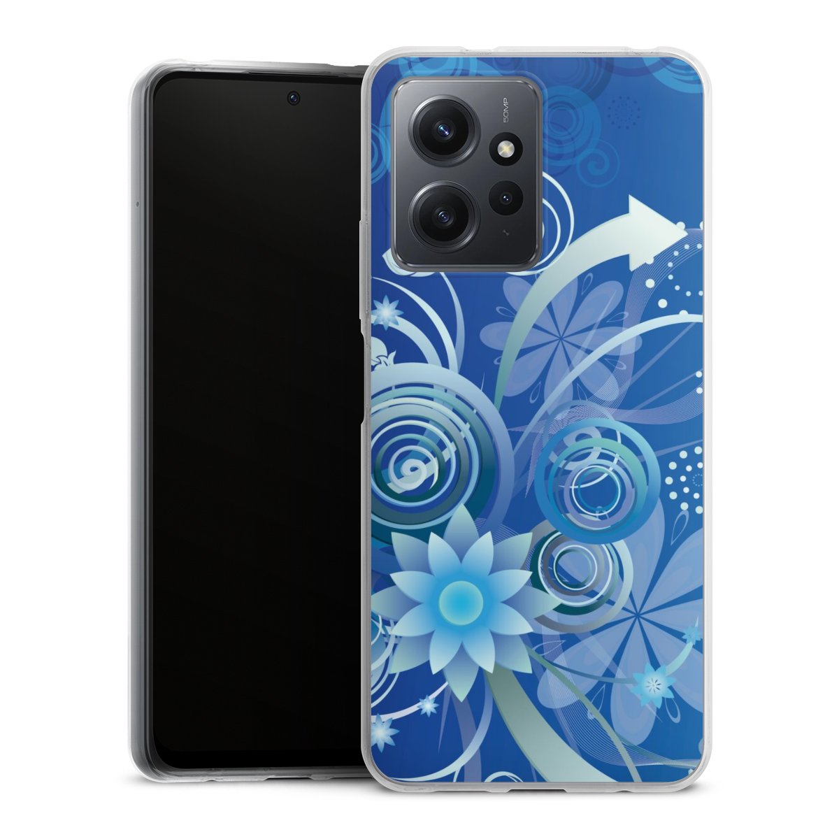 Flowers and Swirls Blue