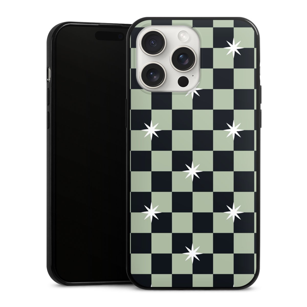 Checked Pattern Black Grey Stars