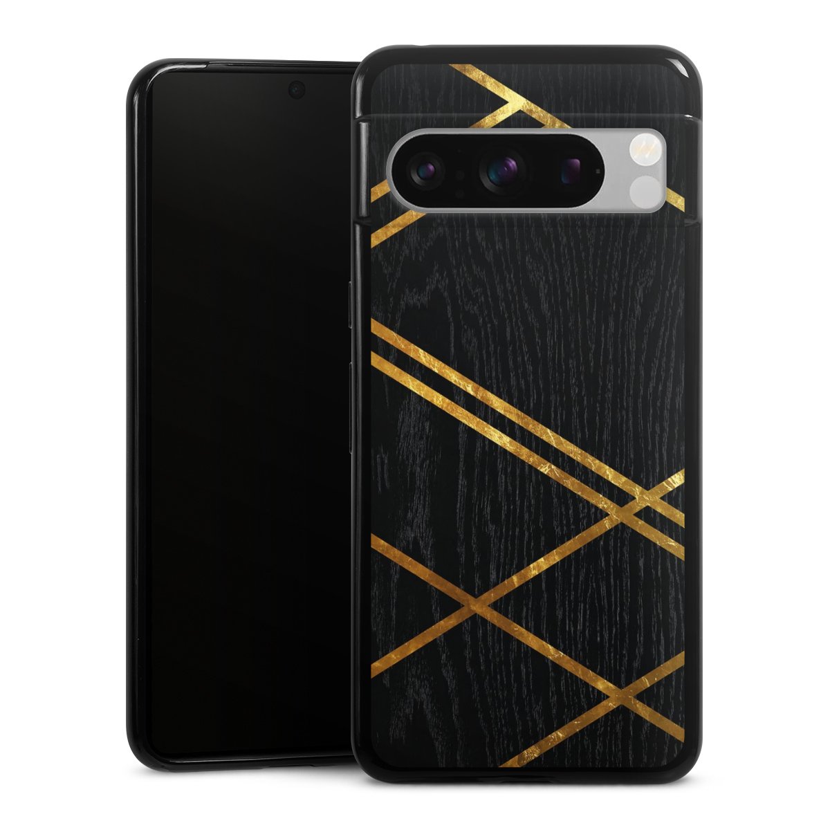 Black Geometric Pattern Golden Stripes