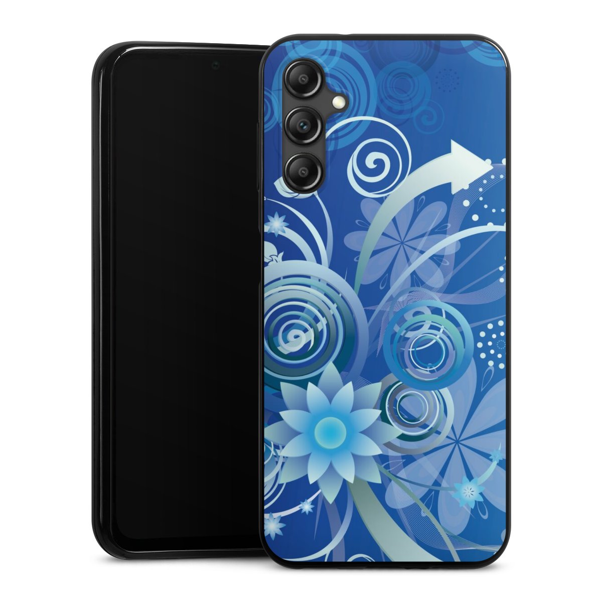 Flowers and Swirls Blue