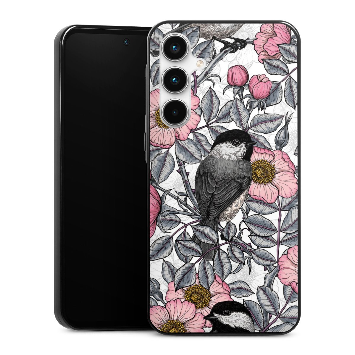 Chickadees and Wild Rose