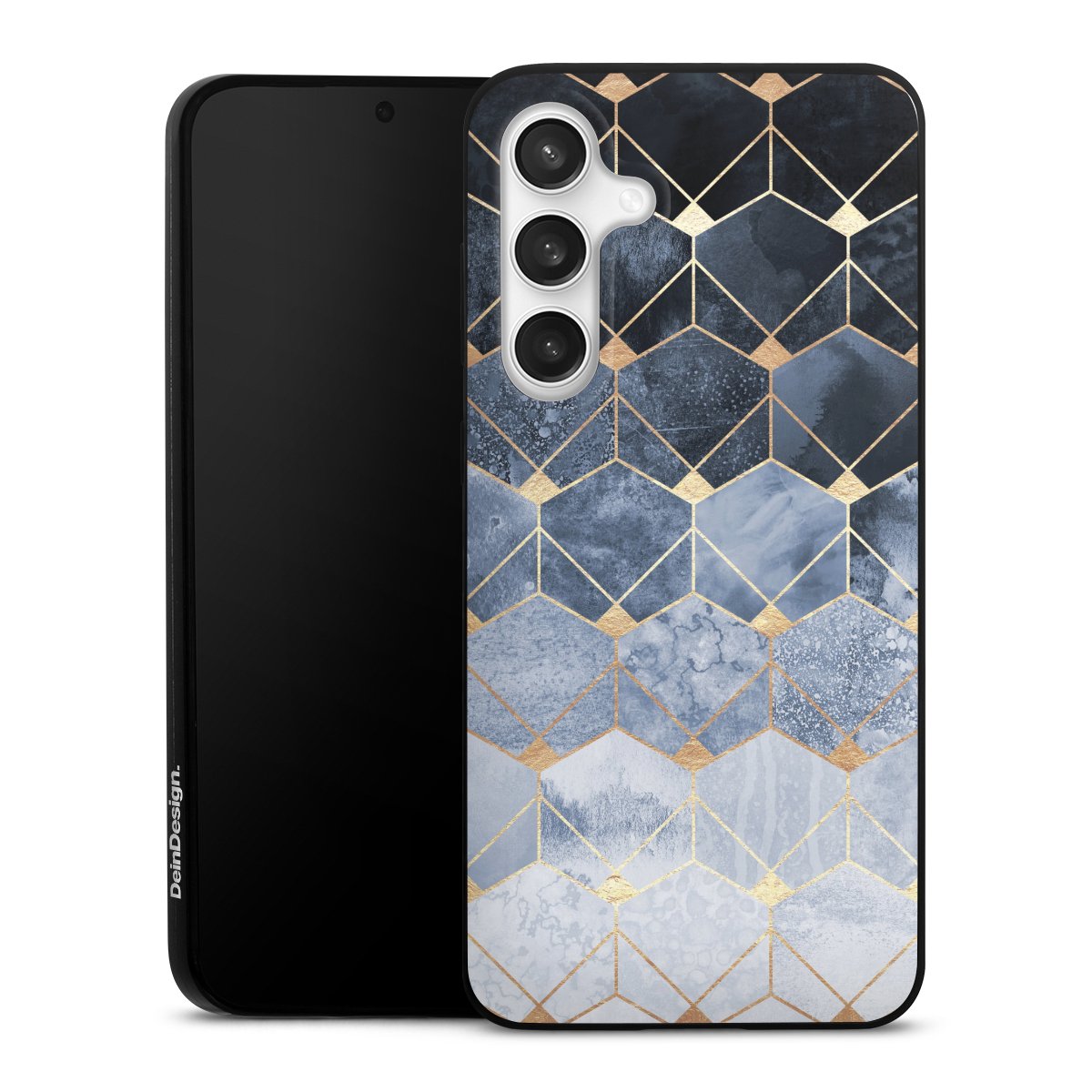Blue Hexagons And Diamonds Gold Print