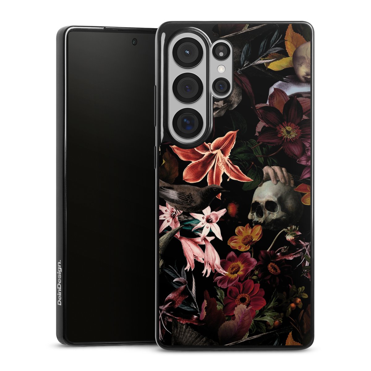 Skulls and Flowers on Dark Background