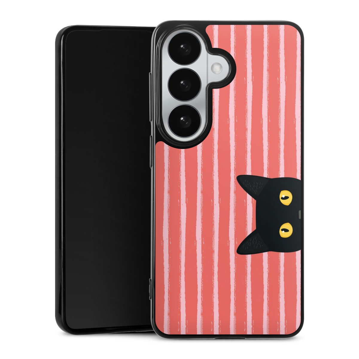 Black Cat on Orange Stripes