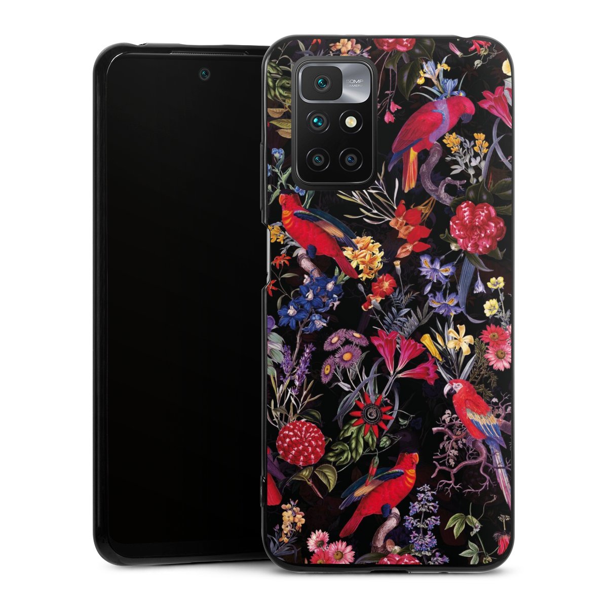 Dark Flowers and Parrots