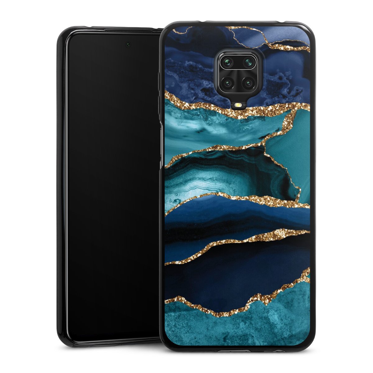 Dark and Light Blue Marble Gold Glitter Look