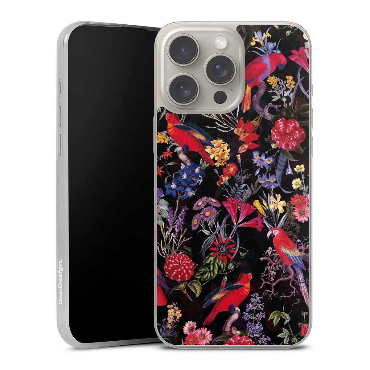 Dark Flowers and Parrots
