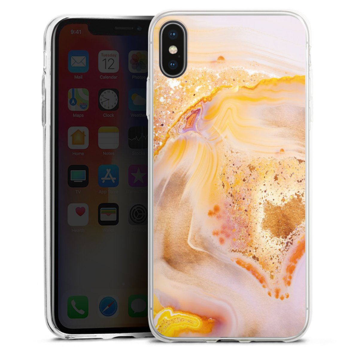 Orange Glitter Marble Look