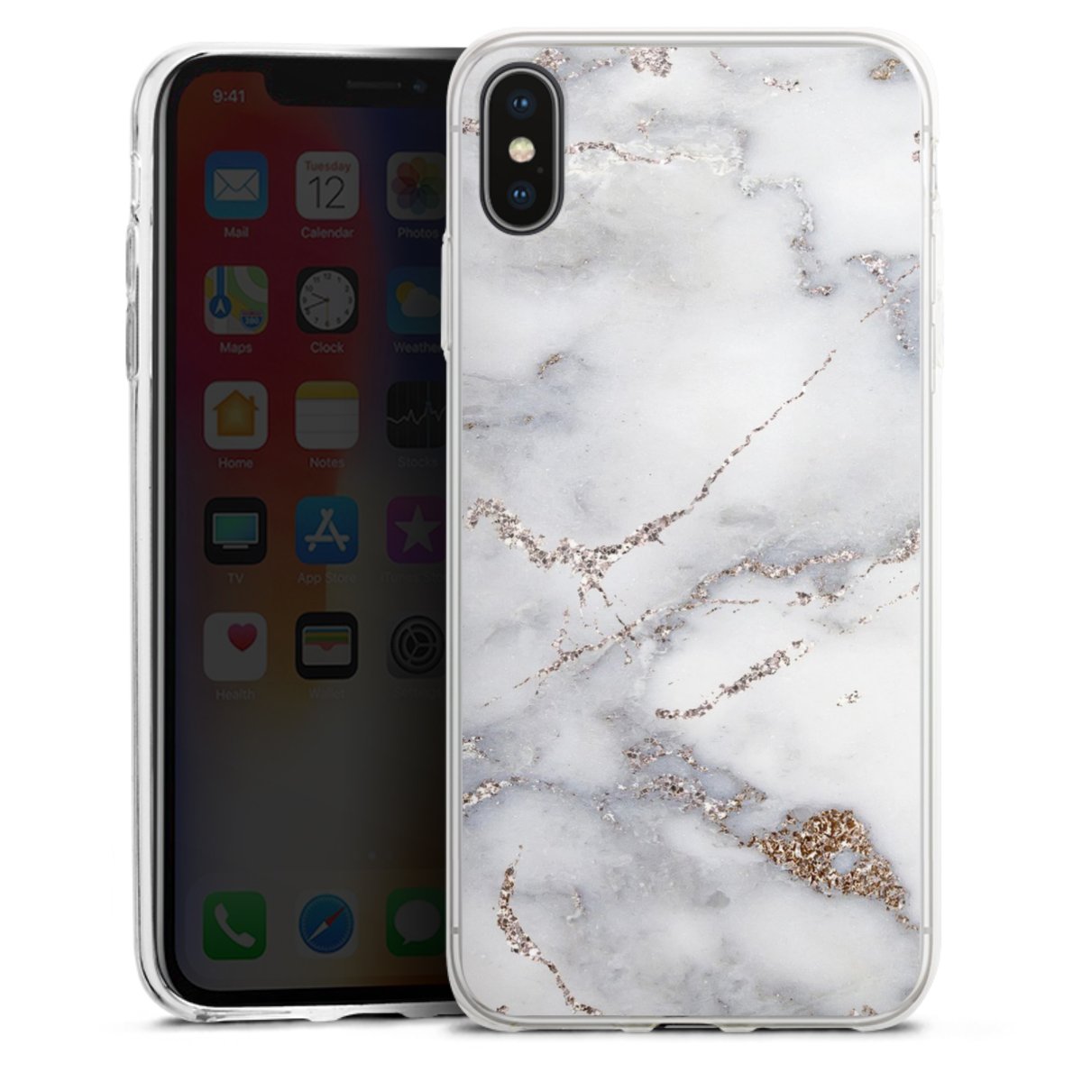 Silver Glitter Marble Look