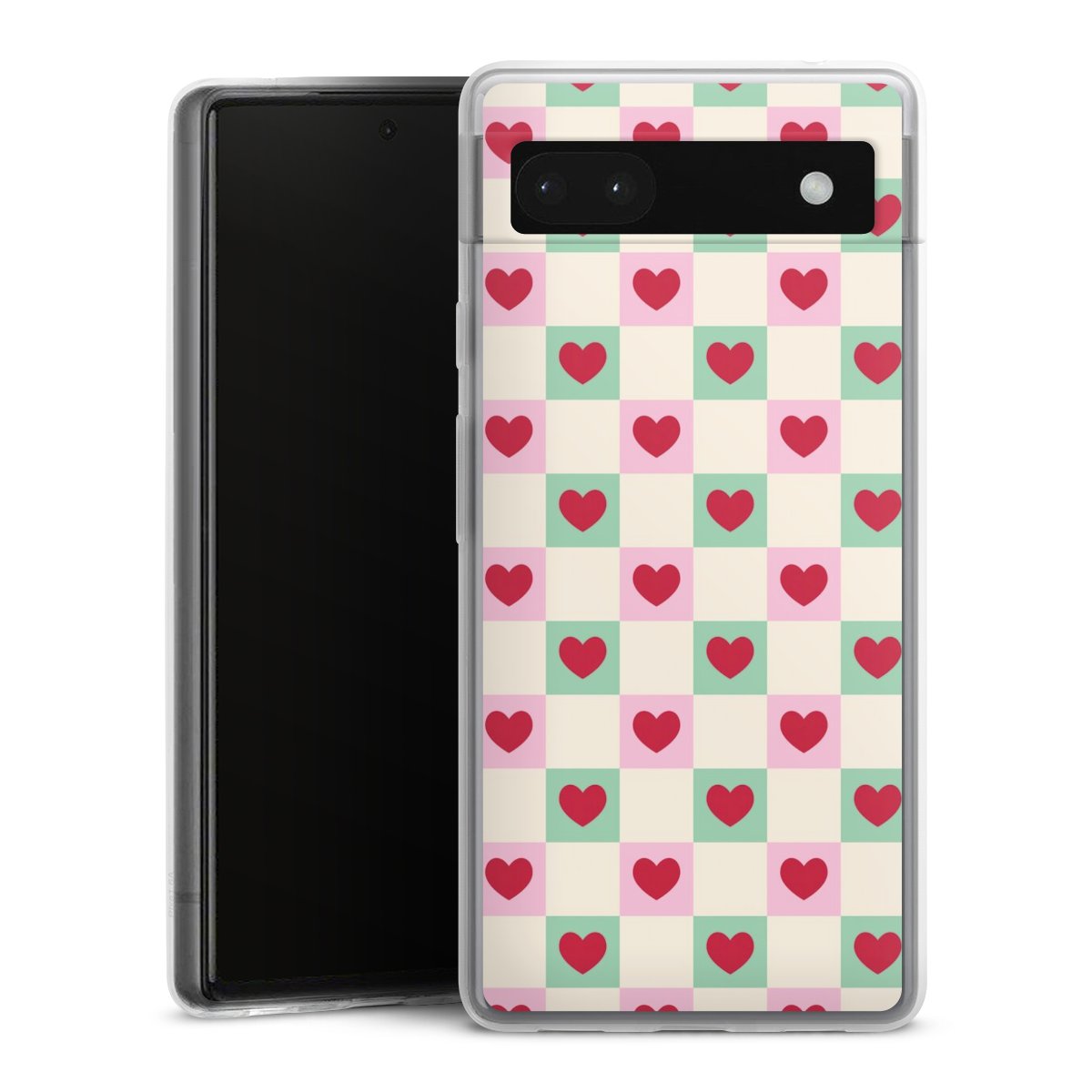 Valentine Checked Hearts Pattern Pink Green