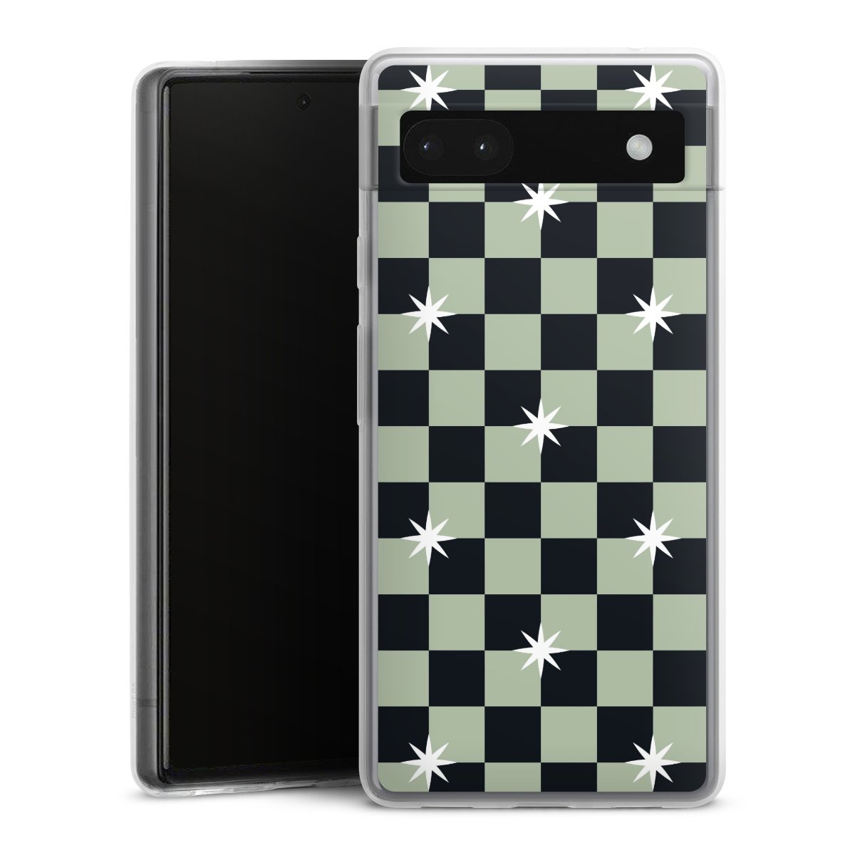 Checked Pattern Black Grey Stars