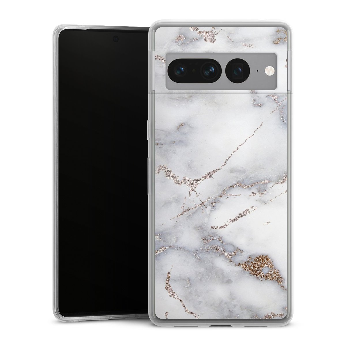 Silver Glitter Marble Look
