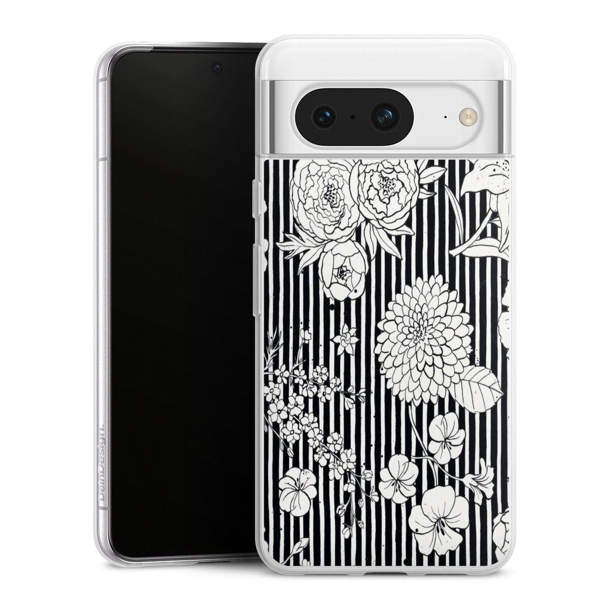 Flowers and Stripes Black and White