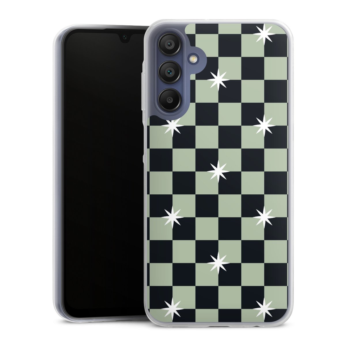 Checked Pattern Black Grey Stars