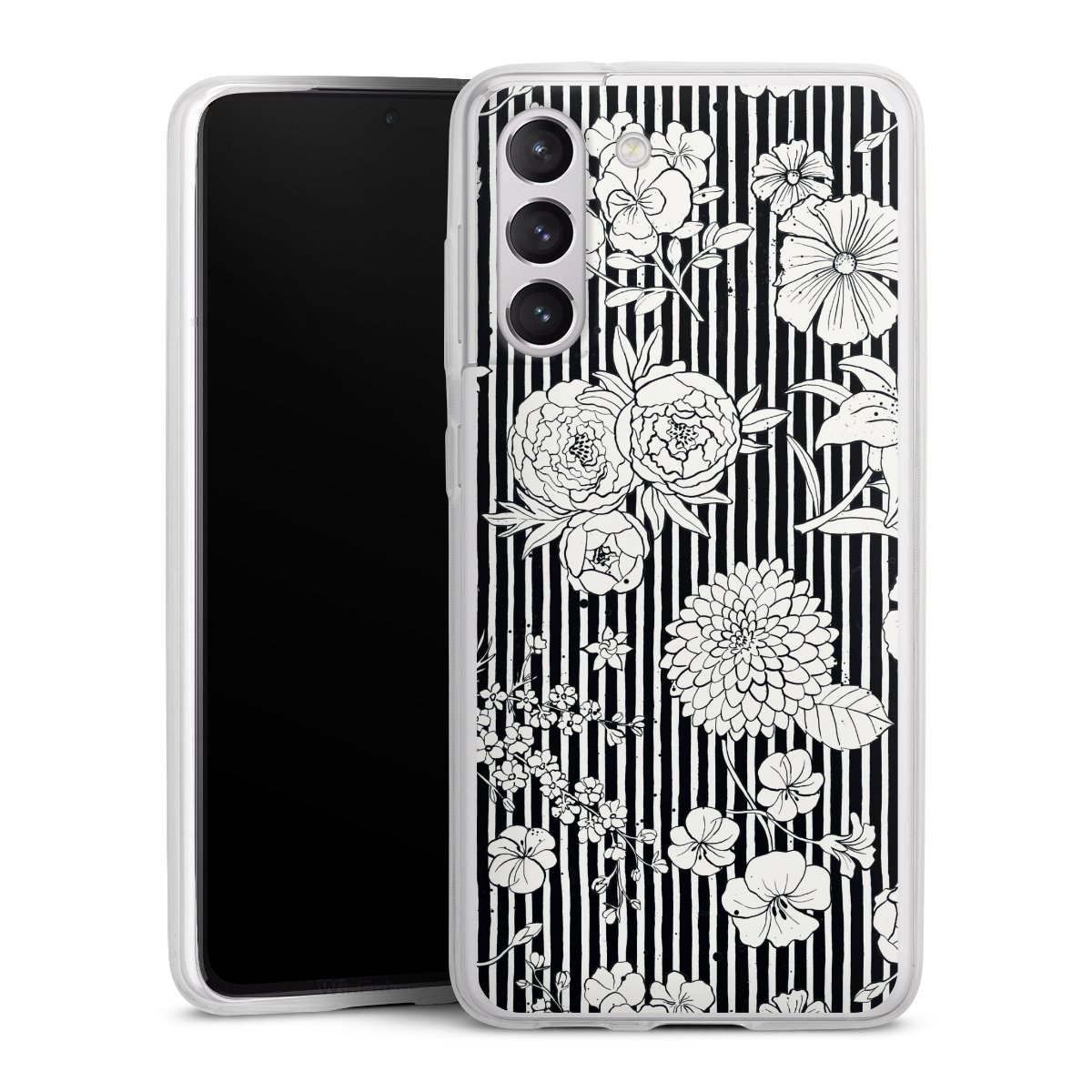 Flowers and Stripes Black and White