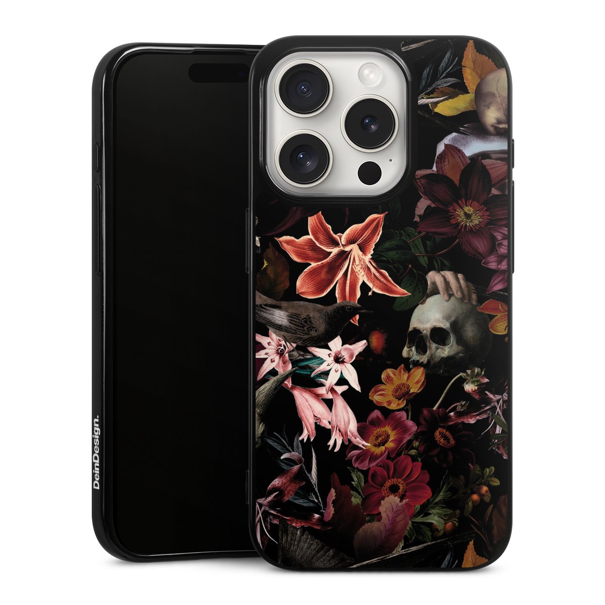 Skulls and Flowers on Dark Background