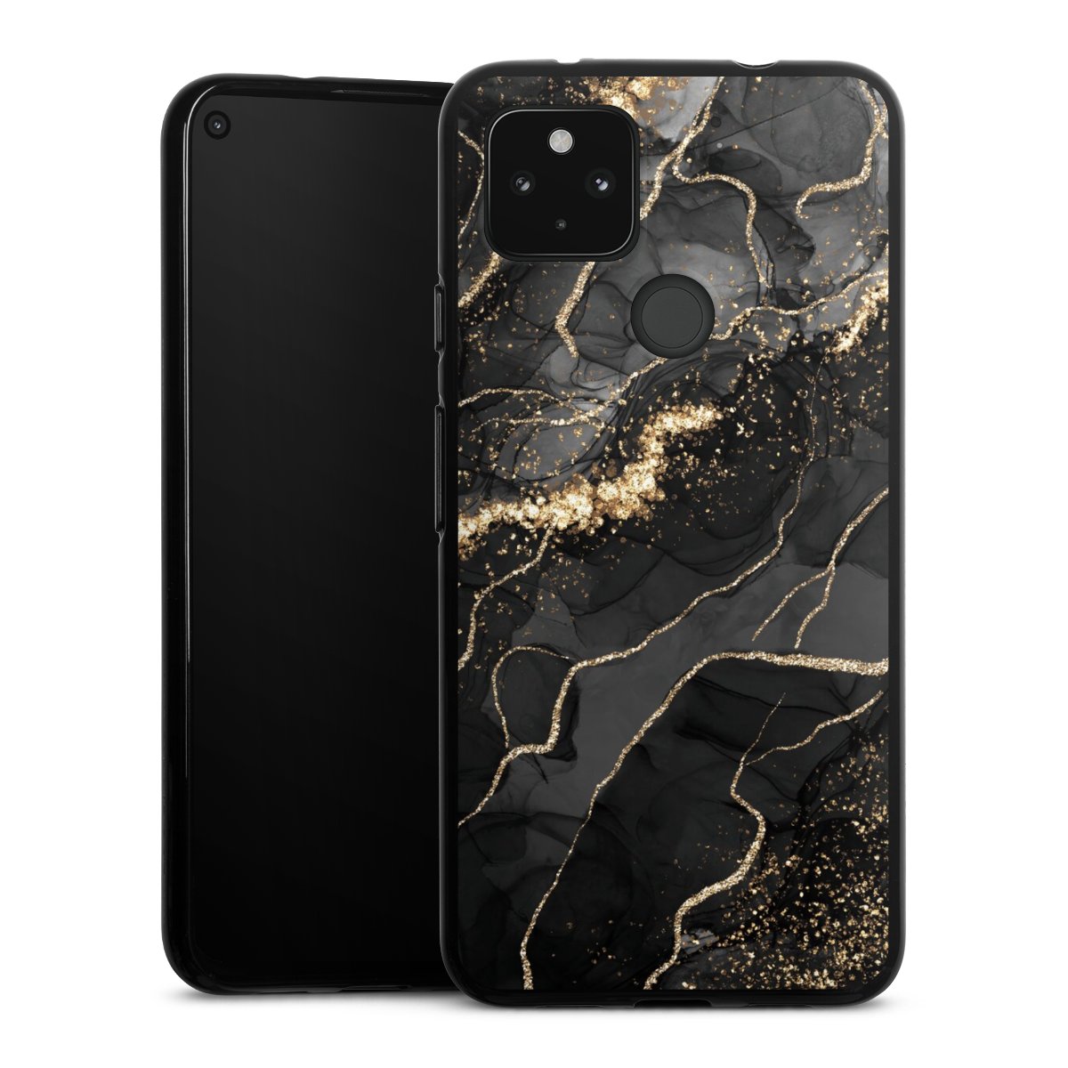 Dark Marble Swirls Gold Look