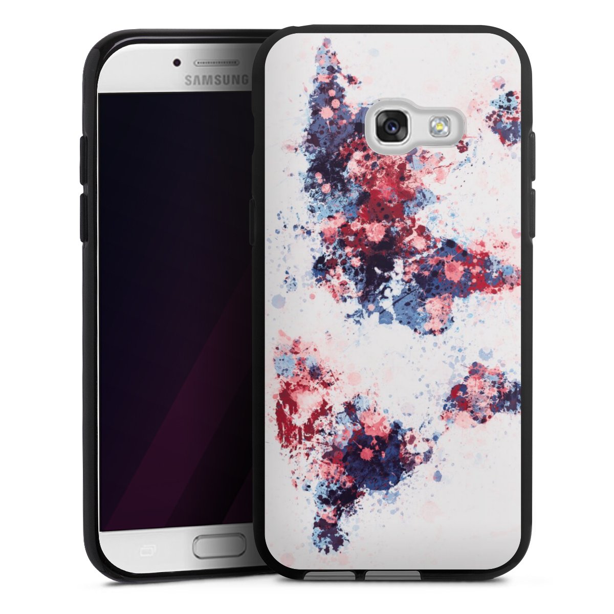 World Map Paint Splashes Blue Red