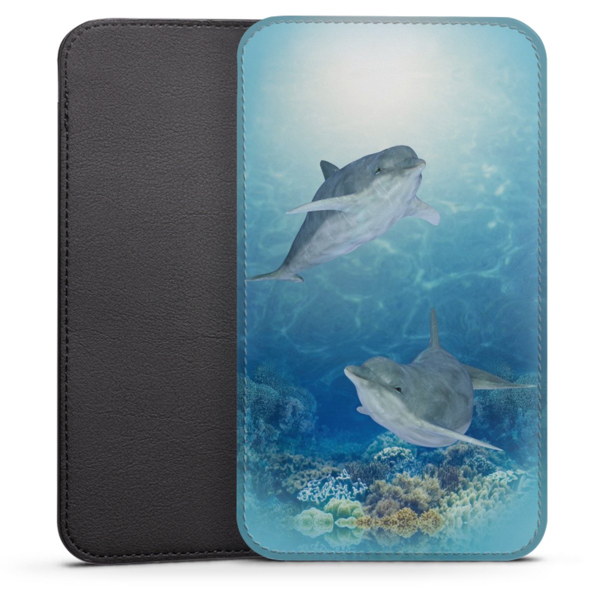 Product details This handy phone sleeve protects your device all around and is made from a highqhality vegan Skai® leather imitate in black on the backside and white on the printable frontside.