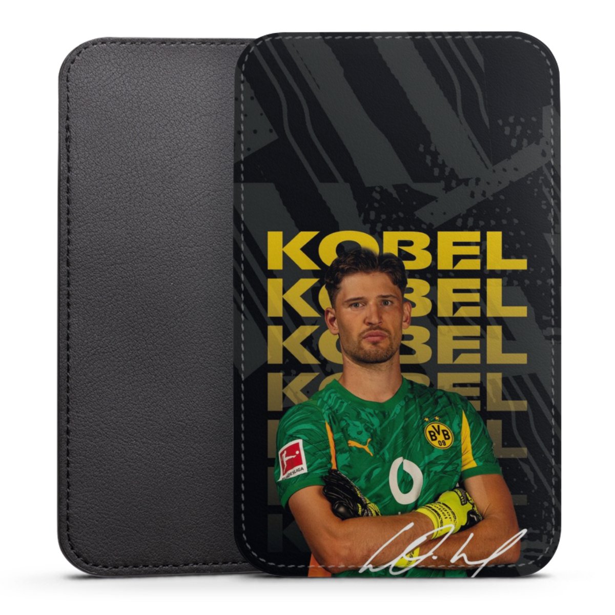 Product details This handy phone sleeve protects your device all around and is made from a highqhality vegan Skai® leather imitate in black on the backside and white on the printable frontside.