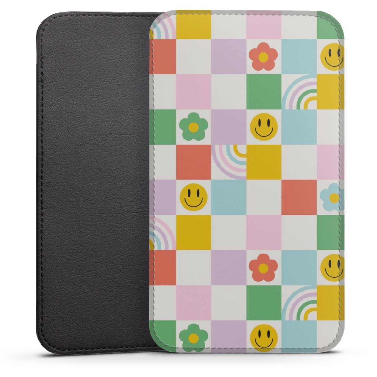 Product details This handy phone sleeve protects your device all around and is made from a highqhality vegan Skai® leather imitate in black on the backside and white on the printable frontside.