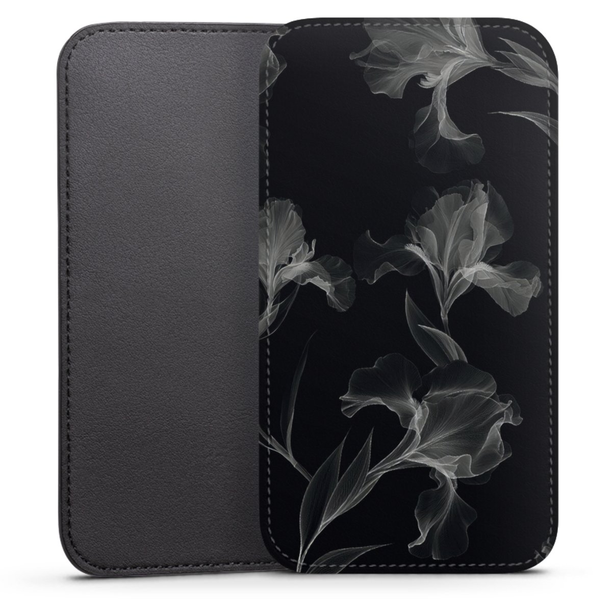 Product details This handy phone sleeve protects your device all around and is made from a highqhality vegan Skai® leather imitate in black on the backside and white on the printable frontside.
