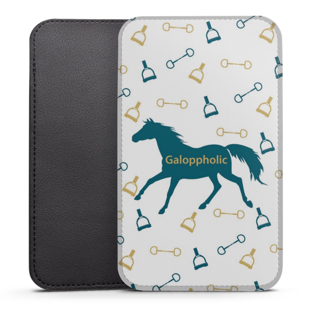 Product details This handy phone sleeve protects your device all around and is made from a highqhality vegan Skai® leather imitate in black on the backside and white on the printable frontside.