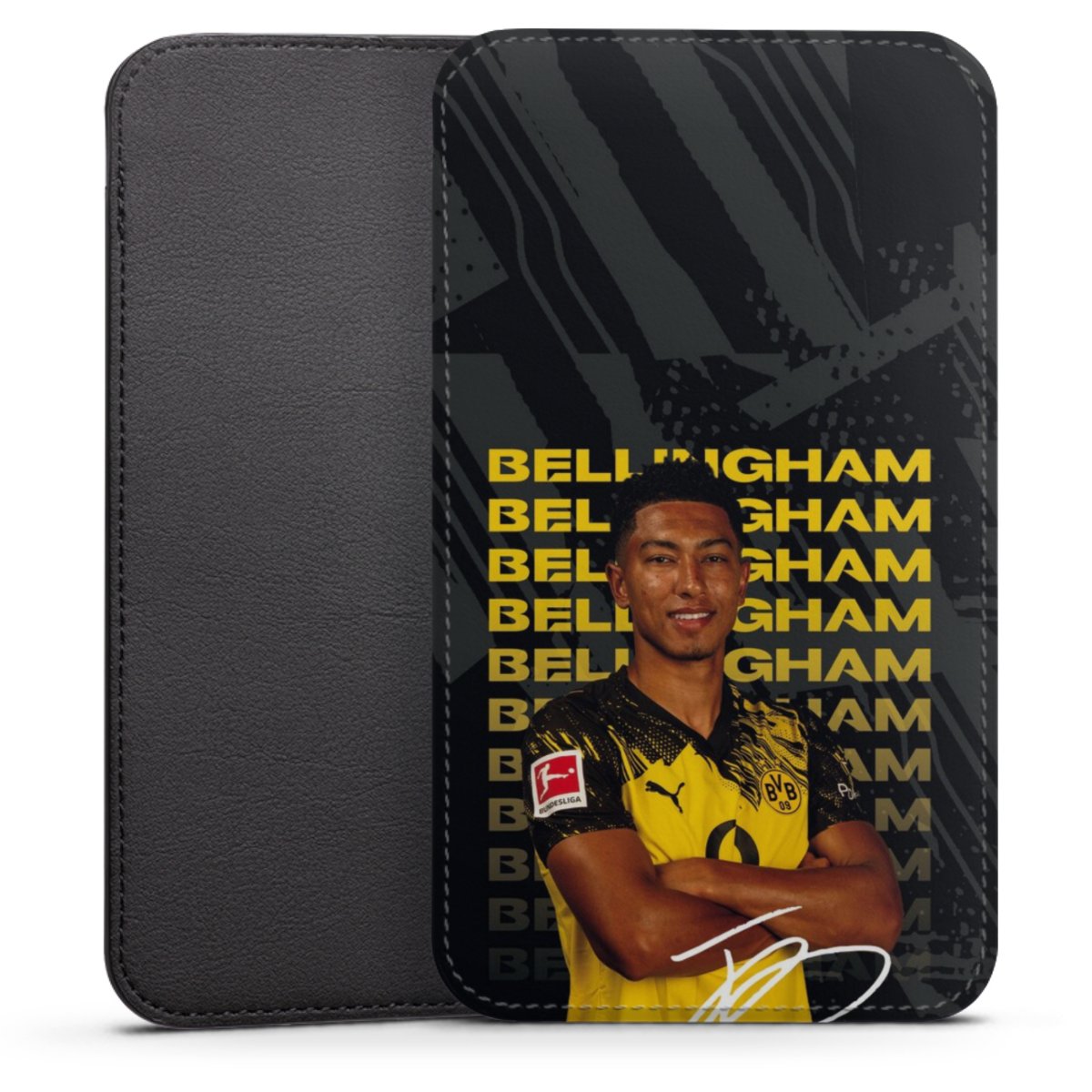 Product details This handy phone sleeve protects your device all around and is made from a highqhality vegan Skai® leather imitate in black on the backside and white on the printable frontside.