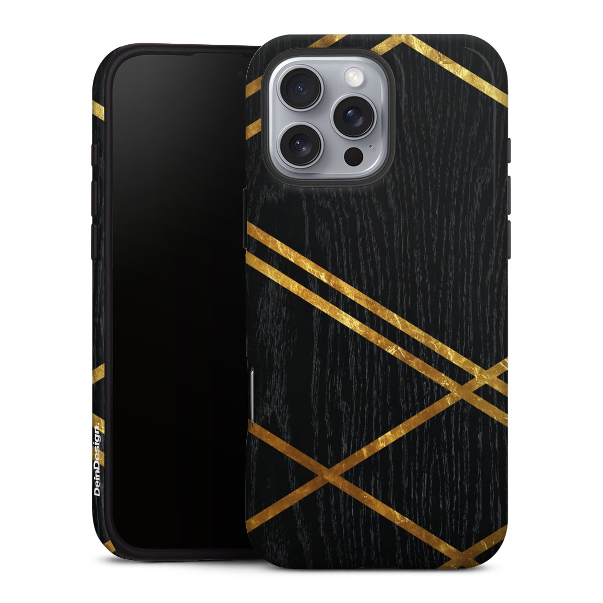Black Geometric Pattern Golden Stripes