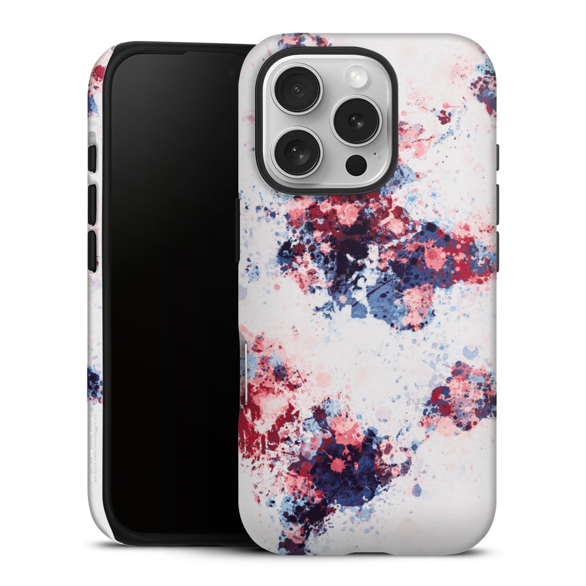 World Map Paint Splashes Blue Red