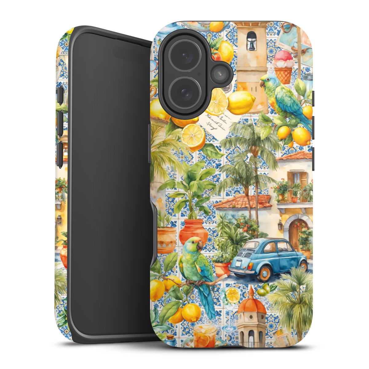 Product details Our most protective phone case combines the advantages of the Silicone and Premium Case: the flexible silicone core on the inside offers an extra shockabsorbing layer, protecting reliably against damages from dropping your phone. The longlasting, polycarbonate hard shell ensures additional stability and a brilliant print result. The surface of the 2,6 mm strong case feels smooth offering a comfortable grip. The case is available with a matt and glossy finish.