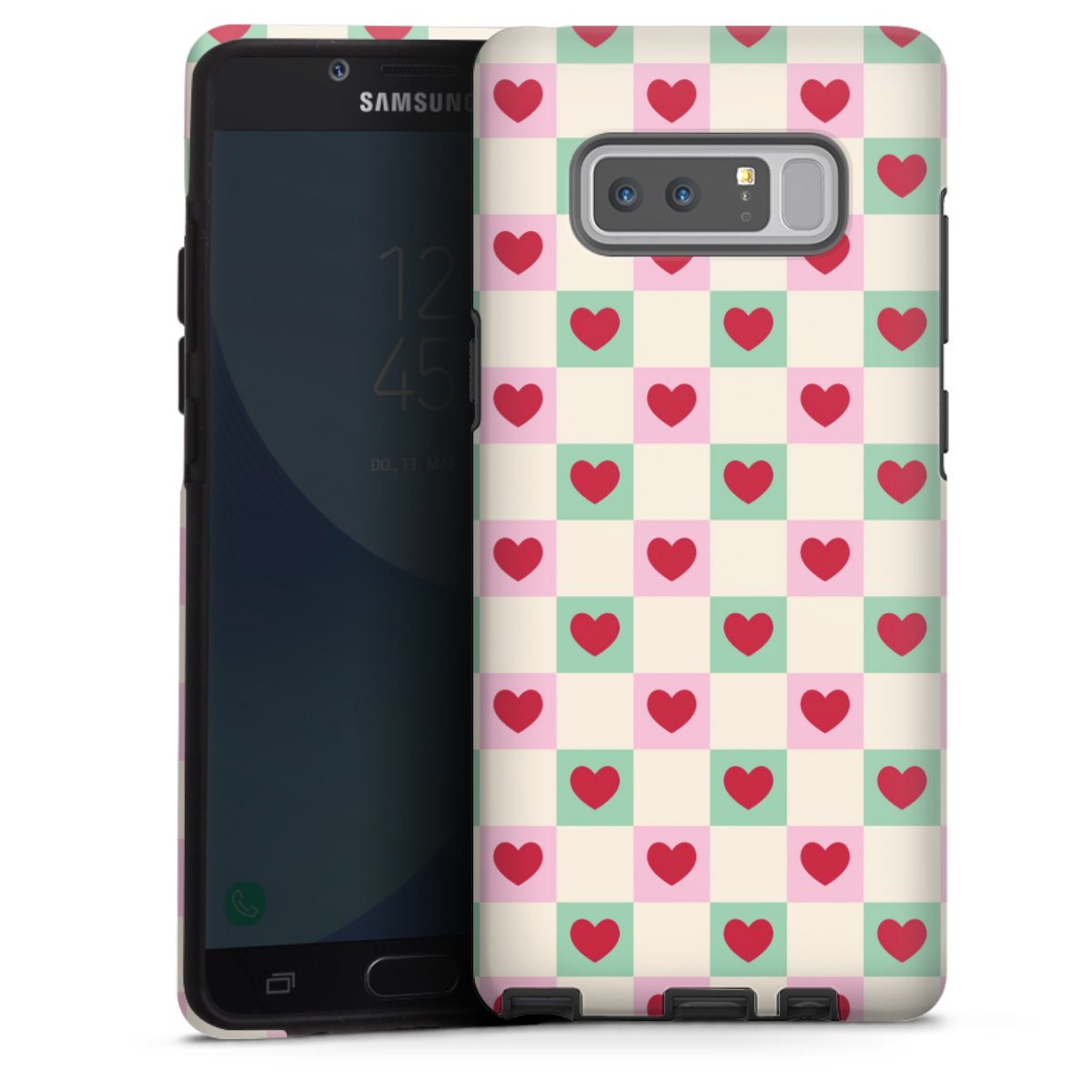 Product details Our most protective phone case combines the advantages of the Silicone and Premium Case: the flexible silicone core on the inside offers an extra shockabsorbing layer, protecting reliably against damages from dropping your phone. The longlasting, polycarbonate hard shell ensures additional stability and a brilliant print result. The surface of the 2,6 mm strong case feels smooth offering a comfortable grip. The case is available with a matt and glossy finish.