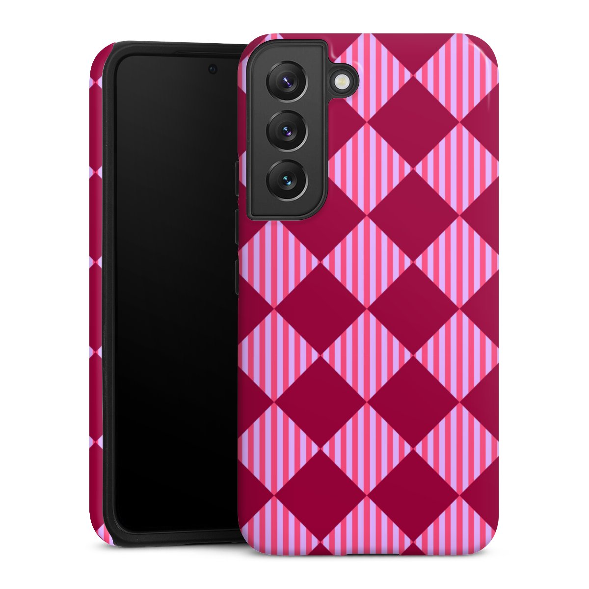Product details Our most protective phone case combines the advantages of the Silicone and Premium Case: the flexible silicone core on the inside offers an extra shockabsorbing layer, protecting reliably against damages from dropping your phone. The longlasting, polycarbonate hard shell ensures additional stability and a brilliant print result. The surface of the 2,6 mm strong case feels smooth offering a comfortable grip. The case is available with a matt and glossy finish.