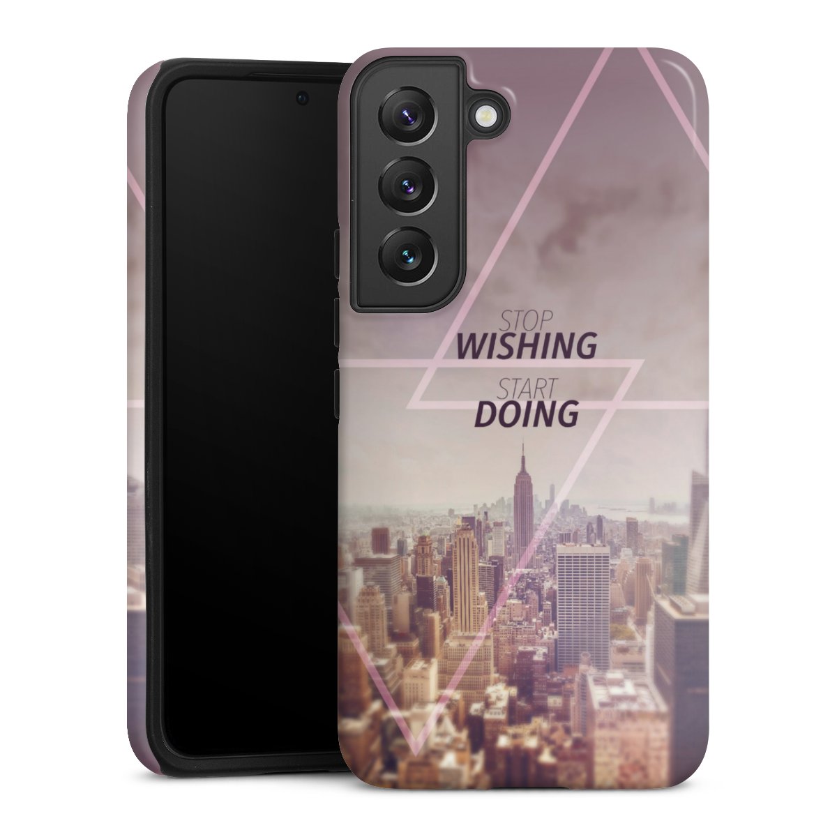 Product details Our most protective phone case combines the advantages of the Silicone and Premium Case: the flexible silicone core on the inside offers an extra shockabsorbing layer, protecting reliably against damages from dropping your phone. The longlasting, polycarbonate hard shell ensures additional stability and a brilliant print result. The surface of the 2,6 mm strong case feels smooth offering a comfortable grip. The case is available with a matt and glossy finish.