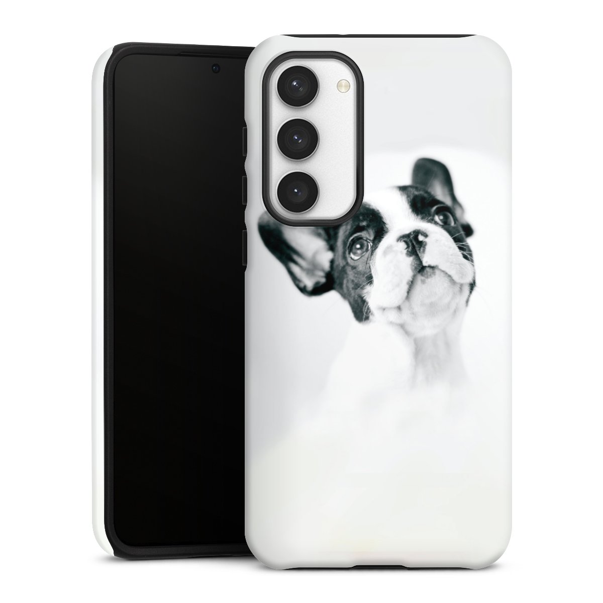Product details Our most protective phone case combines the advantages of the Silicone and Premium Case: the flexible silicone core on the inside offers an extra shockabsorbing layer, protecting reliably against damages from dropping your phone. The longlasting, polycarbonate hard shell ensures additional stability and a brilliant print result. The surface of the 2,6 mm strong case feels smooth offering a comfortable grip. The case is available with a matt and glossy finish.