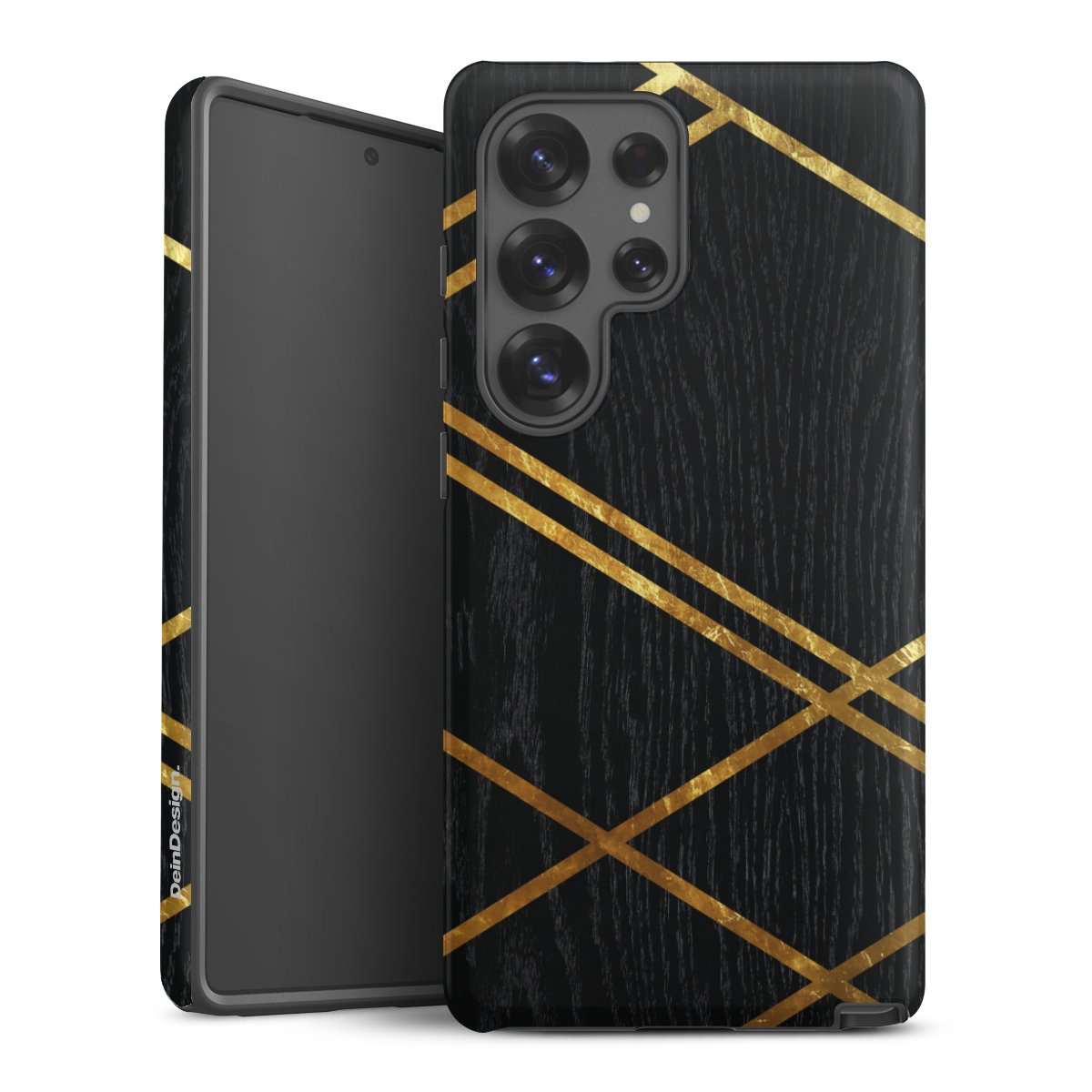 Black Geometric Pattern Golden Stripes